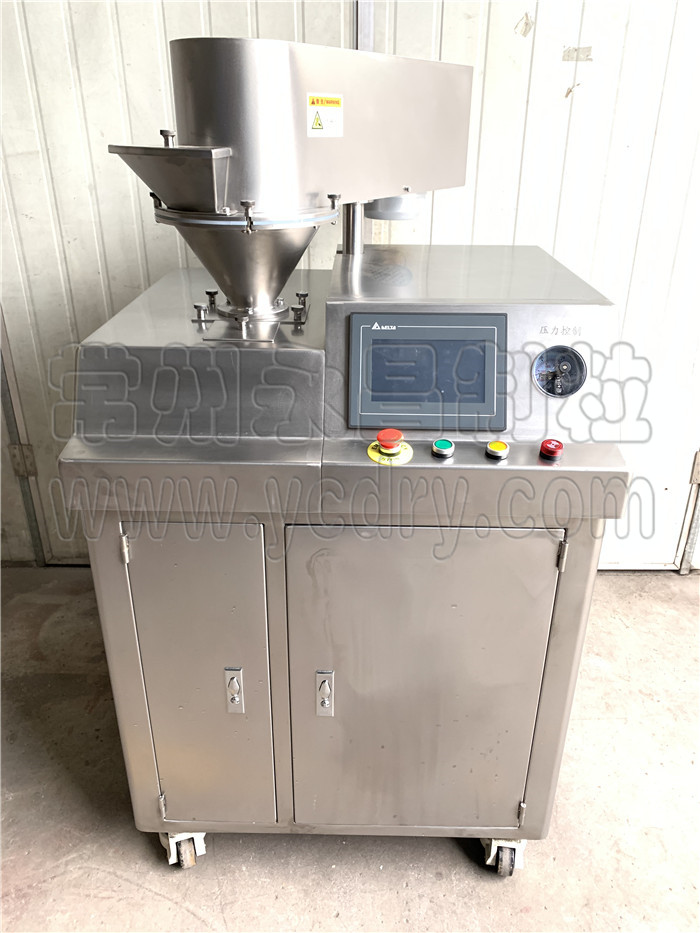 干法制粒机是我厂吸收国外先进粉体造粒技术而开发的干法造粒设备,并在国外技术的基础上加以改进和提高,结构更加合理紧凑、工艺过程简单、操作方便、性能良好。粉体物料经本设备,无需添加任何粘结剂即可直接制成用户所需要的均匀颗粒,颗粒密度大,均无需再进行后续加工处理,减少了工艺流程,不仅降低了造粒成本,并且减少了粉尘污染,改善工人的劳动环境。