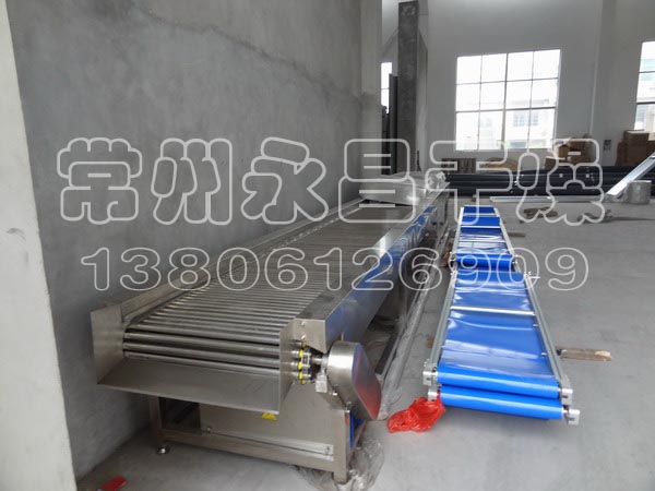 2.采用自传式滚杠输送,可在输送过程中,带动物料旋转,杀菌无死角。