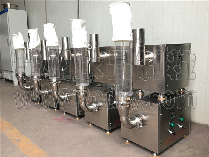 1、本机是用S型碾刀,通过不锈钢筛筒的筛孔,把物料挤出颗粒的设备。在化学物品方面用于把混合的(湿)粉未碾成颗粒, 在制药和食品工业上用作(湿)粉末混合物和麦芽乳品等的混合原料制成型的颗粒,用作冲剂,鸡精,海鲜精等。只需要20-30克左右的粉未就可以做试验。连续加工可以达1-10公斤/小时,颗粒直径为0.8,1.0,1.2,1.5,1.8,2.0,2.5,3.0(mm) 长度一般在3-5(mm)。